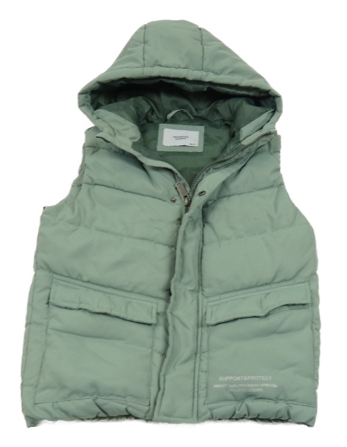 Olivová prošívaná šusťáková zateplená vesta s nápisy a kapucí RESERVED