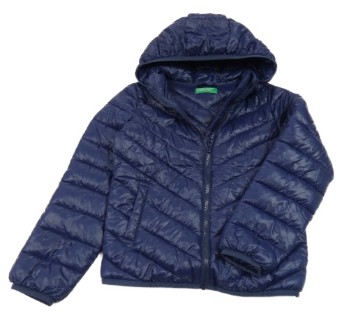Tmavomodrá šusťáková prošívaná zimní bunda s kapucí Benetton