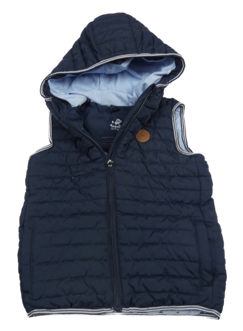 Tmavomodrá šusťáková prošívaná zateplená vesta s kapucí Topolino
