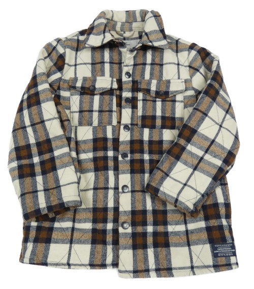 Bílo-hnědo-tmavomodrá kostkovaná vlněná zateplená košilová bunda Topolino