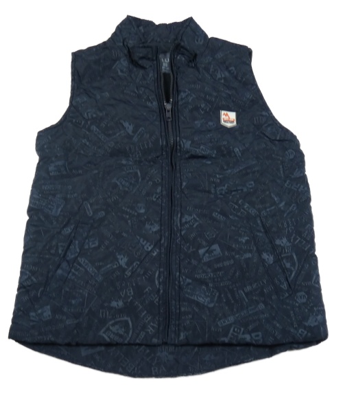Tmavomodrá šusťáková lehce zateplená vesta s nápisy