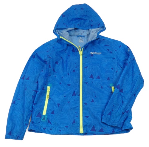 Modrá vzorovaná šusťáková lehká sportovní bunda s kapucí