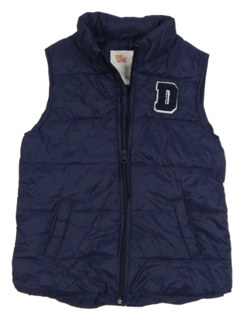 Tmavomodrá šusťáková zateplená vesta s písmenem