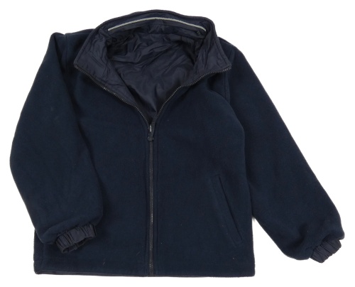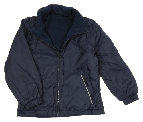 Tmavomodrá šusťáková oboustraná bunda s ukrývací kapucí