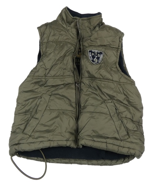 Khaki kostkovaná prošívaná šusťáková zateplená vesta s nášivkou