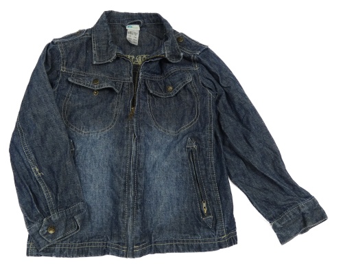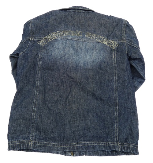 Tmavomodrá riflová bunda s nápisem
