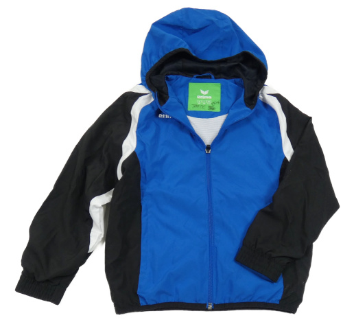 Cobaltově modro-bílo-černá šusťáková funkční jarní bunda s logem a kapucí erima
