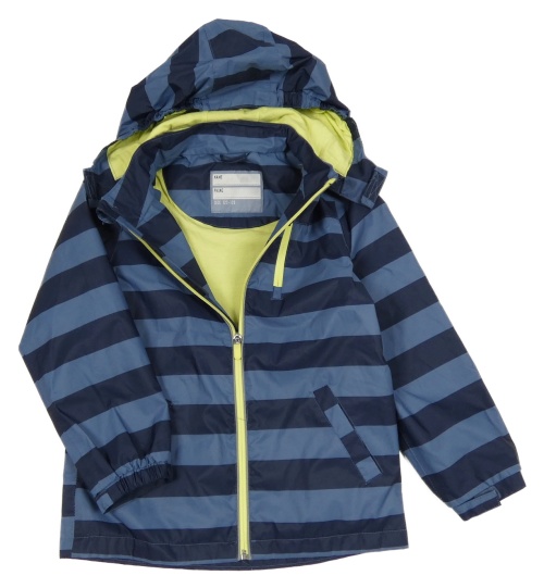 Tmavomodrá pruhovaná šusťáková jarní bunda s kapucí tcm