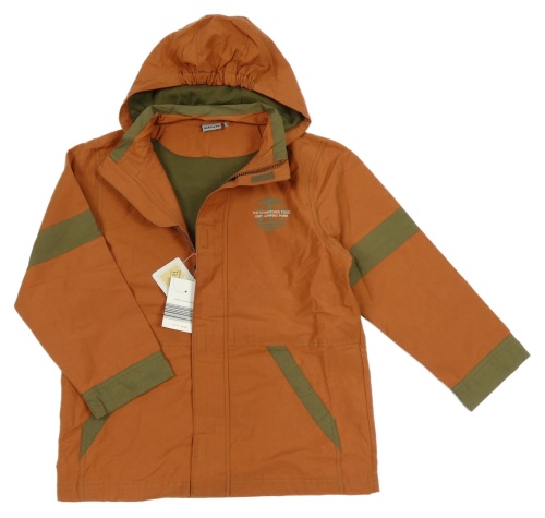 Nové - cihlovo-hnědá šusťáková jarní bunda s nápisy a odepínací kapucí alive