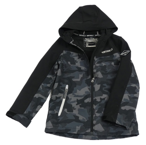Černo-tmavošedá softshellová bunda se vzorem a kapucí C&A