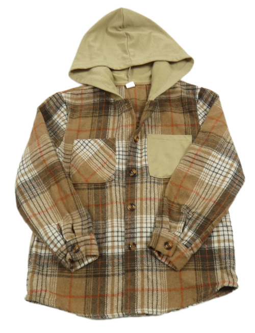 Hnědo-béžová kostkovaná úpletová košilová bunda s kapucí