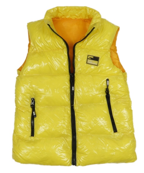Žlutá lesklá voděodolná zateplená vesta s nášivkou