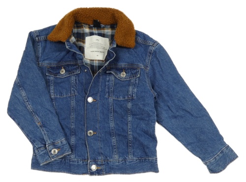 Modrá podšitá riflová bunda s huňatým límcem H&M