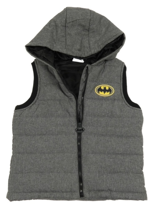 Šedá šusťáková zateplená vesta s Batmanem a kapucí