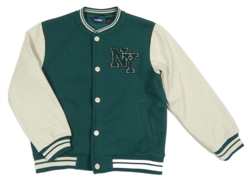 Zeleno-smetanová baseballová mikina s koženkovými rukávy Lupilu