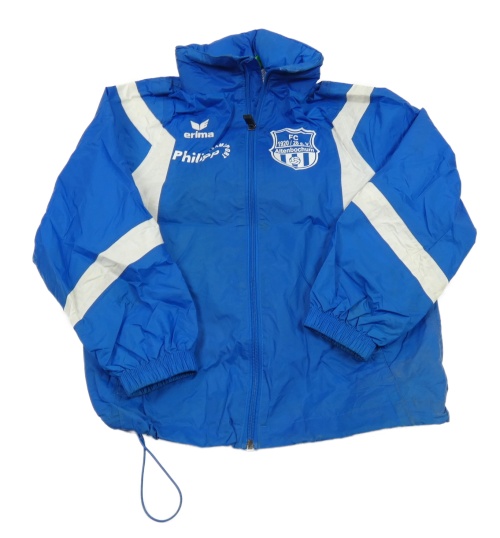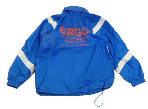 Modro-bílá šusťáková jarní bunda s nápisy a kapucí Erima