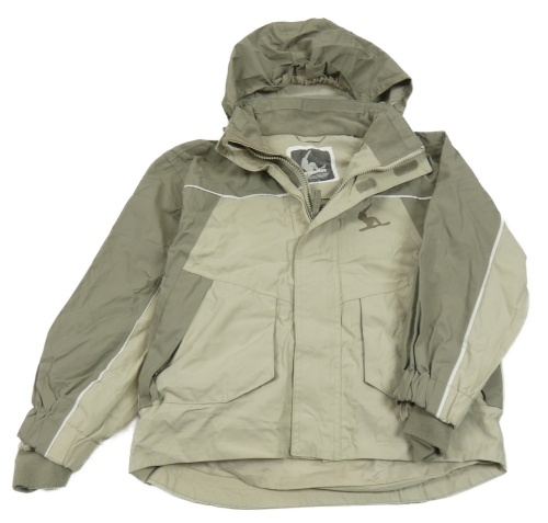 Světlebéžovo-šedá šusťáková lyžařská bunda se snowboardistou a odepínací kapucí Mountainer