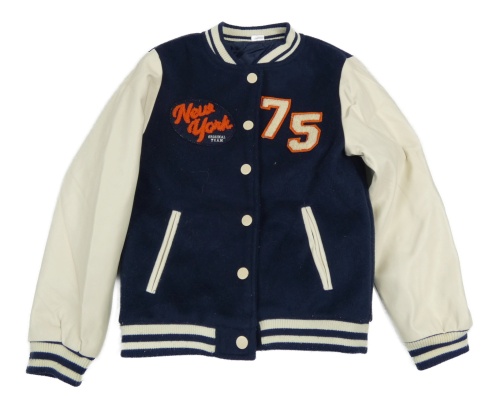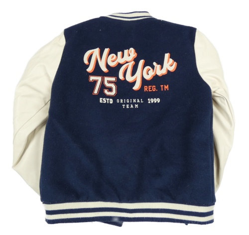 Tmavomodro-smetanová fleecovo/koženková lehce zateplená bunda s číslem Zeeman