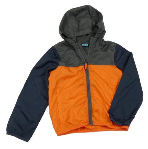 Tmavooranžovo/šedo/tmavomodrá kostkovaná šusťáková funkční bunda s kapucí crane