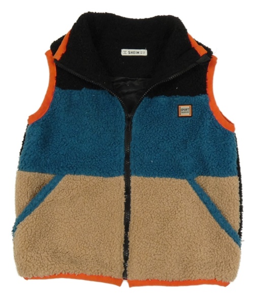 Černo-modro-hnědá huňatá podšitá vesta shein