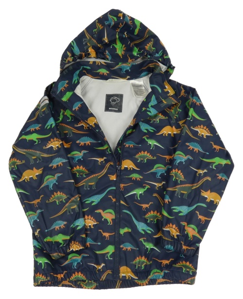 Tmavomodrá nepromokavá bunda s dinosaury a kapucí H&M
