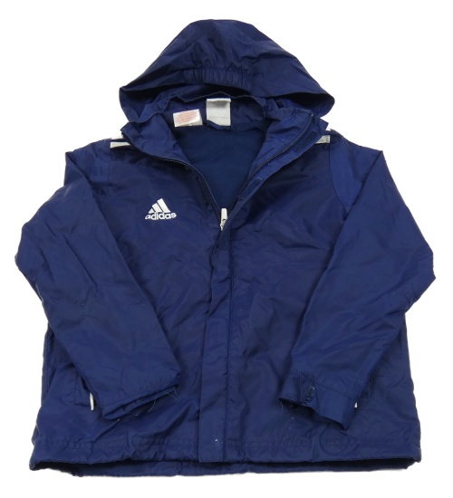 Tmavomodrá šusťáková sportovní funkční bunda s logem a kapucí Adidas