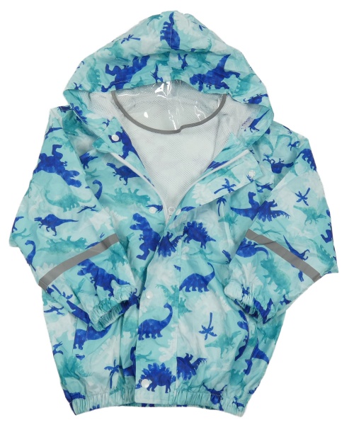 Mintová voděodolná šusťáková bunda s dinosaury a kapucí