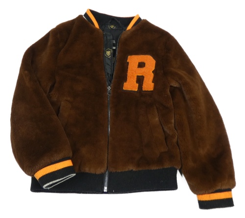 Hnědo-oranžový kožešinový bomber s písmenem River Island