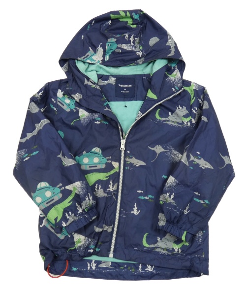 Tmavomodrá šusťáková jarní bunda s ponorkami a kapucí