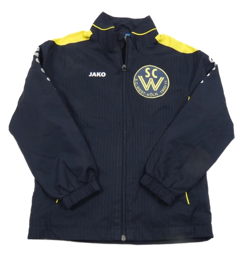 Tmavomodro-žlutá šusťáková sportovní bunda s potiskem Jako