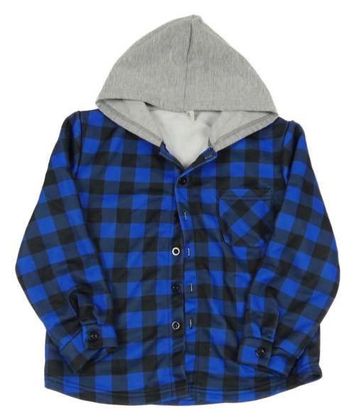 Černo-cobaltově modrá kostkovaná košilová bunda s kapucí