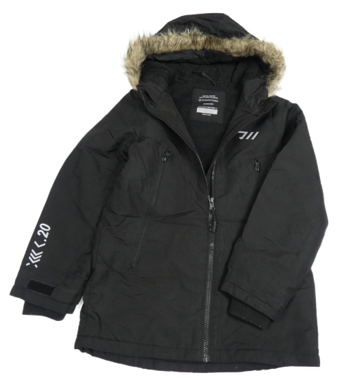Černá šusťáková podzimní bunda s kapucí s kožešinou Primark