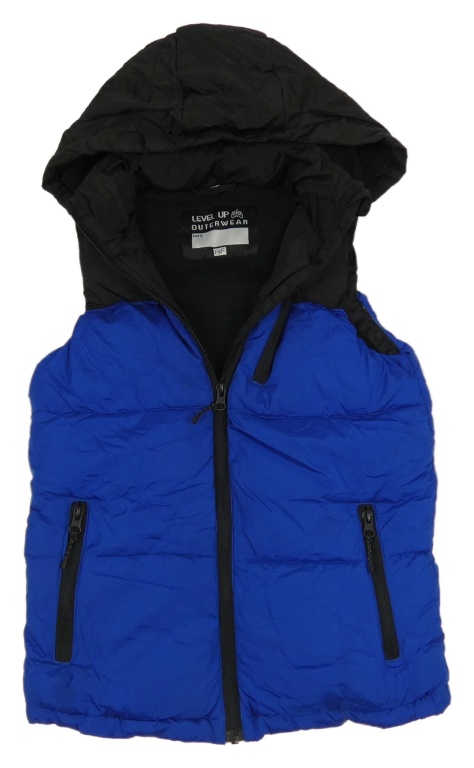 Safírovo-černá šusťáková zateplená vesta s kapucí F&F