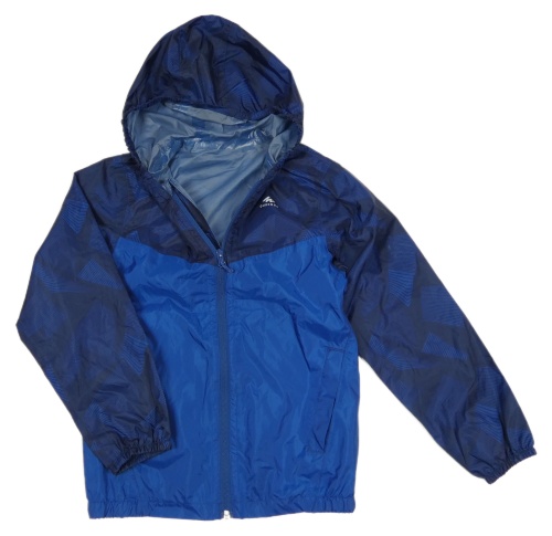 Safírovo-tmavomodrá šusťáková nepromokavá funkční bunda se vzorem a kapucí Quechua