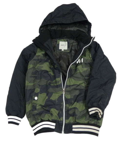 Khaki army-černá šusťáková zimní bunda s písmeny a kapucí