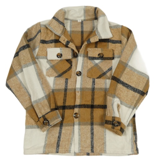 Hnědo-bílo-šedá kostkovaná košilová bunda