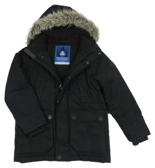 Černá šusťáková zimní bunda s kapucí s kožešinou Next