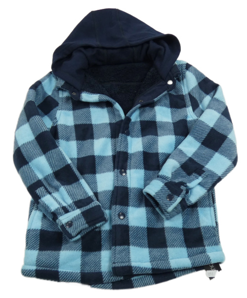 Nové - modro-tmavomodrá kostkovaná fleecová zateplená košilová bunda s kapucí dunnes