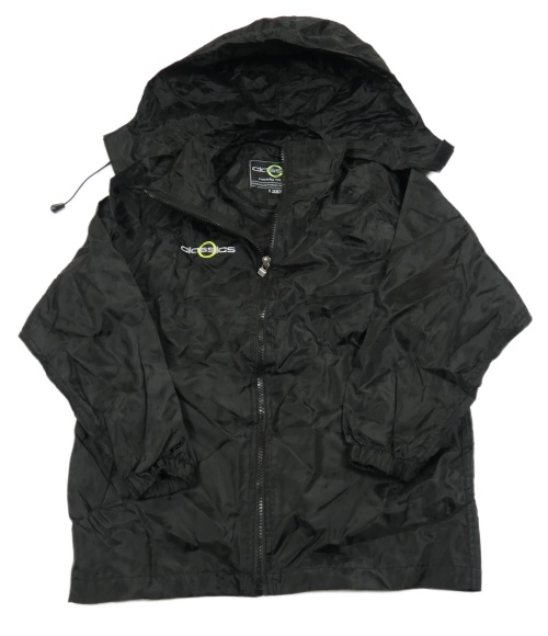 Černá šusťáková sportovní bunda s nápisem a ukrývací kapucí