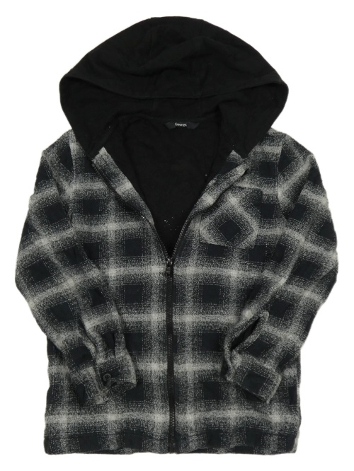 Černo-šedá kostkovaná flanelová košilová bunda s kapucí George