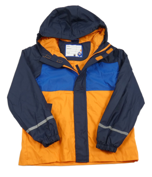 Tmavomdoro-modro-oranžová nepromokavá podzimní bunda s kapucí Kiki&Koko