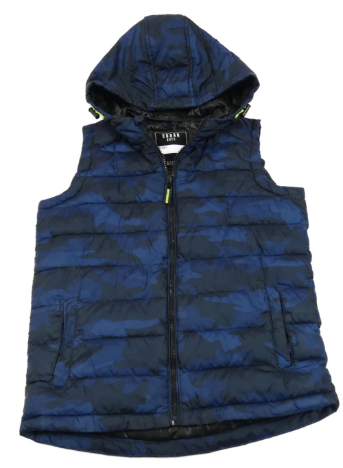 Tmavomodro-černá army šusťáková zateplená vesta s kapucí Matalan