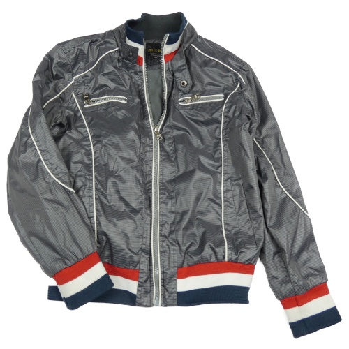 Šedá šusťáková vzorovaná jarní bunda s pruhy