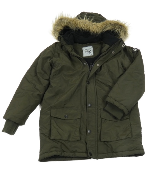 Tmavokhaki šusťáková zimní bunda s kapucí s kožešinou YIGGA