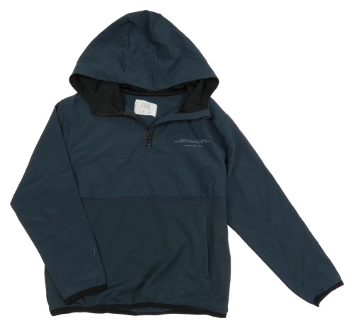 Tmavomodrá šusťáková lehká sportovní bunda s nápisem a kapucí Zara