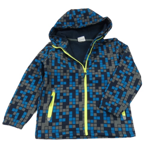 Tmavomdoro-modro-šedá kostkovaná softshellová bunda s kapucí Yigga