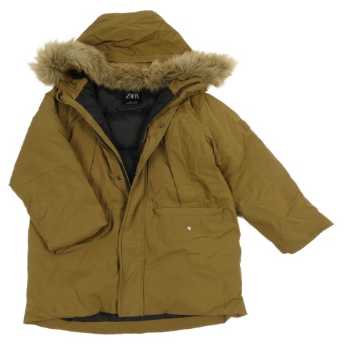 Hnědá šusťáková zimní bunda s kapucí s kožešinou Zara