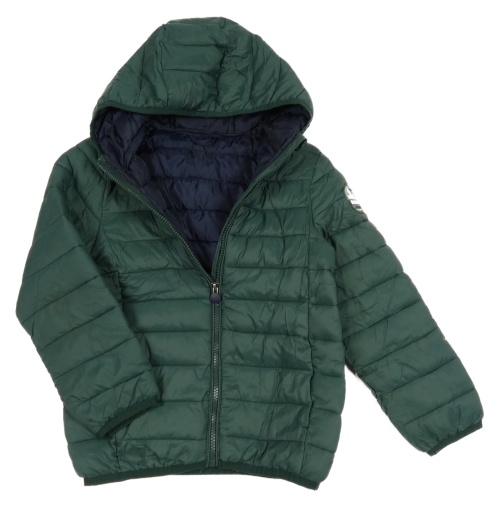 Smaragdová prošívaná šusťáková jarní zateplená bunda s nášivkou a kapucí Vertbaudet