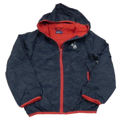 Tmavomodrá šusťáková jarní bunda s potiskem a kapucí