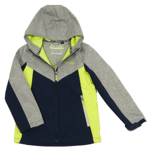 Šedo-tmavomodro-neonová softshellová bunda s kapucí C&A